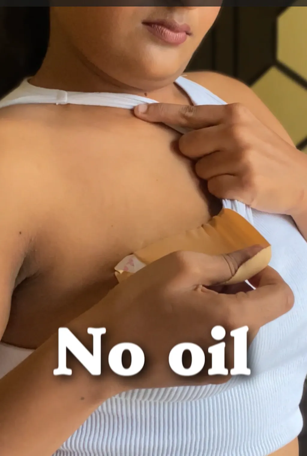- Extra support: For added lift and support—especially for heavier or sagging breasts—use breast tape. Start from one side of the breast, guide the tape under, and bring it up towards the other side, creating a “U” shape. This method also helps cover side bulges and naturally brings the breasts inward for a lifted look.